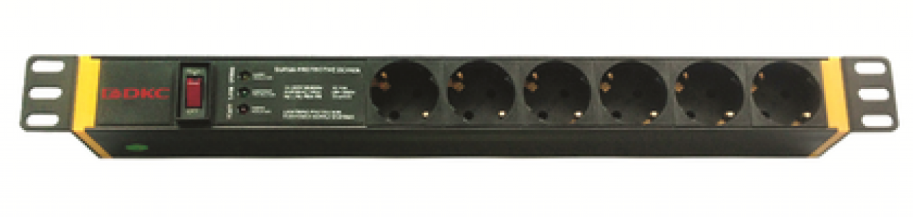 Блоки распределения электропитания ДКС (БРП или PDU) предназначены для обеспечения электропитания активных потребителей, размещенных в IT-корпусах. Совместимы со всеми сериями 19-дюймового оборудования. Блок оснащен устройством защиты от перенапряжения, индикаторами заземления, перенапряжения, электропитания, выключателем с подсветкой. Имеет 6 разъемов Sсhuko и и двухметровый кабель питания (разъем Sсhuko). Номинальное напряжение - 220-250 В, номинальная сила тока 16 А. Крепеж входит в комплект.
