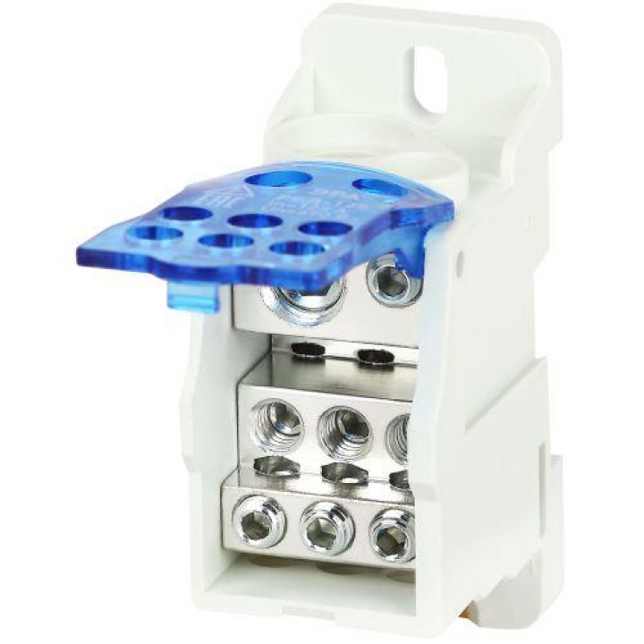 Распределительные блоки РБД на DIN-рейку ЭРА предназначены для распределения электроэнергии от проводника большего сечения на несколько проводников меньшего сечения. Изделие представляет собой клеммный винтовой зажим из луженой латуни в компактном корпусе из негорючего полиамида 6.6. Крепится на монтажную панель или на DIN-рейку с помощью универсального крепления. Применяется для создания упорядоченных систем распределения в силовых шкафах, квартирных распределительных щитах и для организации главной заземляющей шины. Применение распределительных блоков РБД на DIN-рейку позволяет: - создать упорядоченную систему распределения для нулевых, фазных или заземляющих проводников, входящие и отходящие, - сократить количество проводников в щитке, что упрощает его обслуживание, - сэкономить пространство и без особых усилий размещать новые элементы, - обеспечить стабильное и долговечное соединение. Особенности конструкции изделия: - Цельная токоведущая шина изготовлена из луженой латуни с высоким содержанием меди, что гарантирует хорошую электропроводность и низкий нагрев. - Монолитный ступенчатый блок уменьшает переходное сопротивление. - Корпус не поддерживает горение, т.к. выполнен из полиамида с добавлением антипиренов - Безопасная установка и эксплуатация обеспечивается за счет прозрачной крышки, которая защищает от случайных прикосновений и облегчает визуальный контроль соединений. - Удобство монтажа за счет усовершенствованной конструкции универсального крепления с возможностью установки на DIN-рейку 35 мм и монтажную панель. - Болтовой зажим с шестигранной головкой обеспечивают надежное крепление и контакт проводников, а скругленная контактная часть резьбы предотвращают срез проводника при затяжке. - Быстрота монтажа обеспечивается за счет нанесенной на переднюю крышку специальной маркировки размеров и соответст