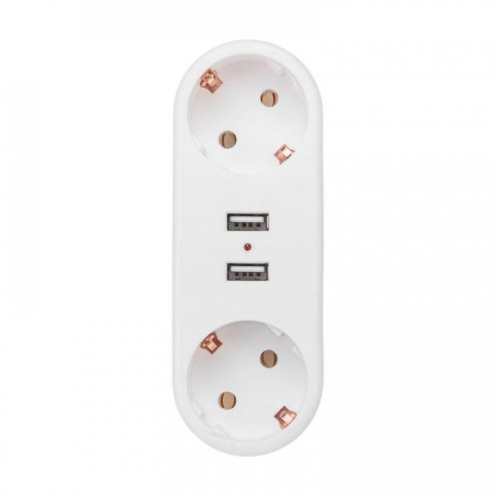 Двойник электрический линейный с двумя USB-портами предназначен для подключения к электрическим сетям с напряжением 220 В. С его помощью вы сможете подключить сразу два прибора бытового назначения со стандартной вилкой и два прибора с USB-разъемами питания с максимальной мощностью 2,4 А. Корпус выполнен из негорючего пластика полипропилен, устойчив к высоким температурам и механическим повреждениям, соответствует требованиям пожаробезопасности. Розетки обеспечивают плотное обжатие присоединяемых вилок за счет упругих пластин контактной группы адаптера. Напряжение: 220 В Частота тока: 50 Гц Номинальный ток: 16 А Мощность: 3500 Вт Заземление контактов: да Наличие USB: да Цвет: белый Корпус материала: полипропилен Температура воздуха: -10...+40 °С