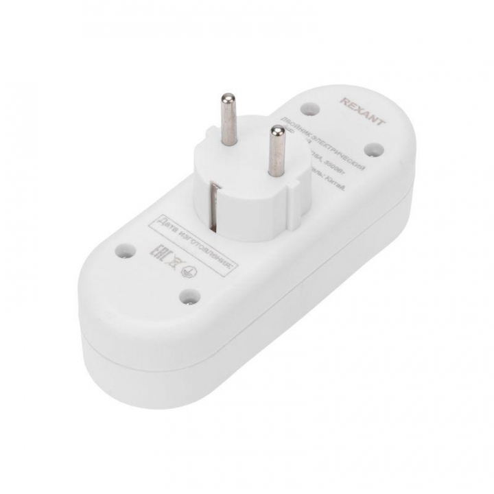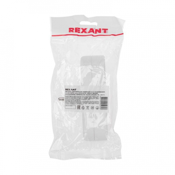 Двойник электрический линейный 16А с/з+2 USB-порта 2.4А бел. Rexant 11-1090