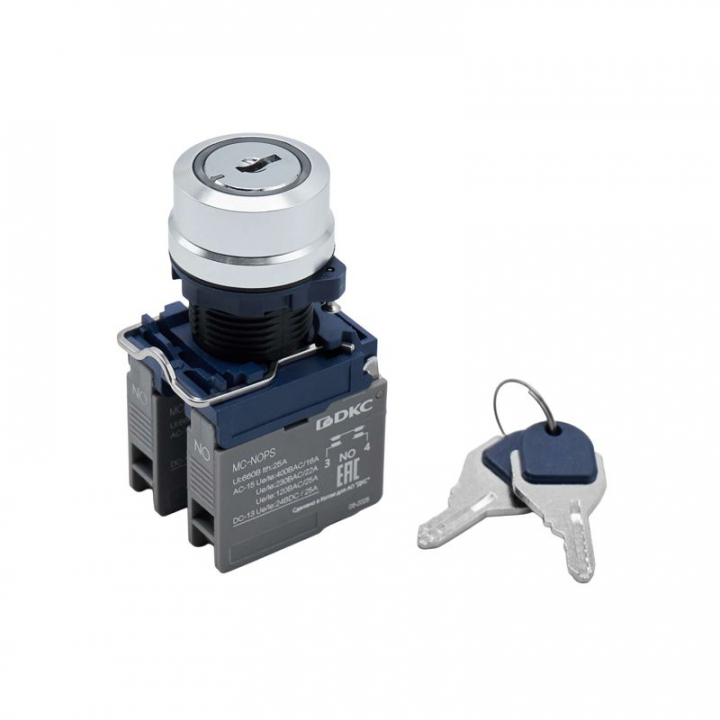 Головка переключателя с ключом на 2 положения с фиксацией стандартная ручка алюм. черн. DKC M22S-KL2A