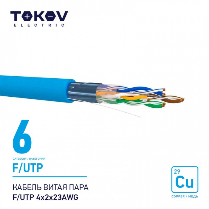 Кабель витая пара F/UTP 4х2х23AWG кат.6 500м TOKOV ELECTRIC TKE-C08-F/UTP-42-6-500