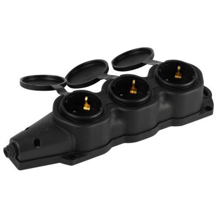 Колодка 3-м с заземл. 16A IP44 KX-3e-B-IP44 каучук. черн. Эра Б0068453
