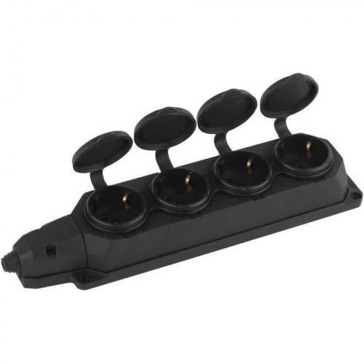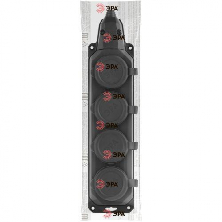 Колодка удлинителя 4-м с заземл. 16А IP44 K-4e-B-IP44 каучук черн. Эра Б0044546