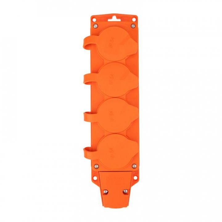 Колодка удлинителя 4-м с заземл. 16А IP54 влагозащ. с защ. крышкой COMPACT каучук оранж. Rexant 111-228
