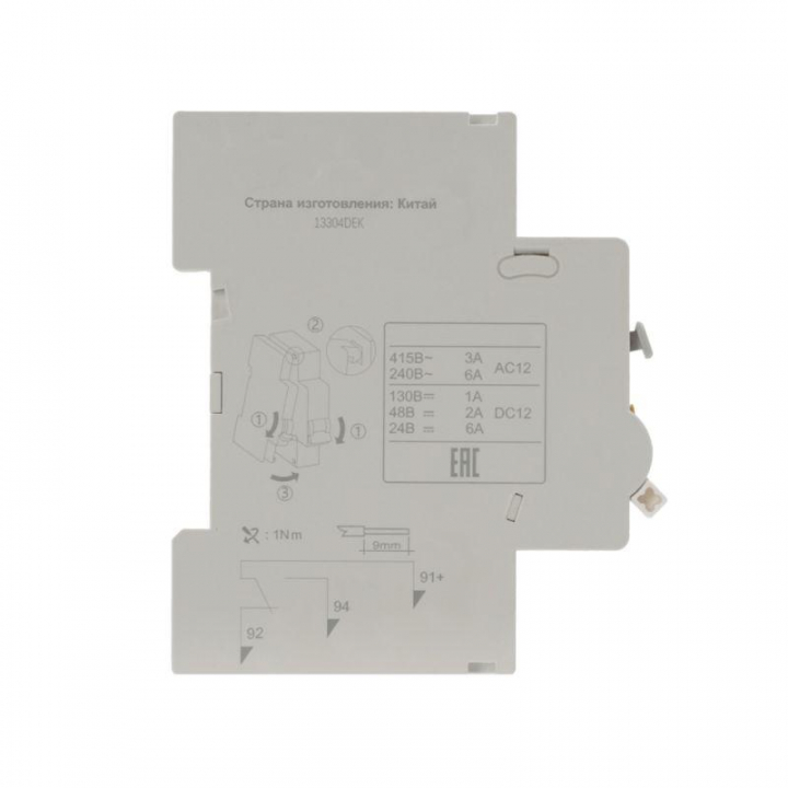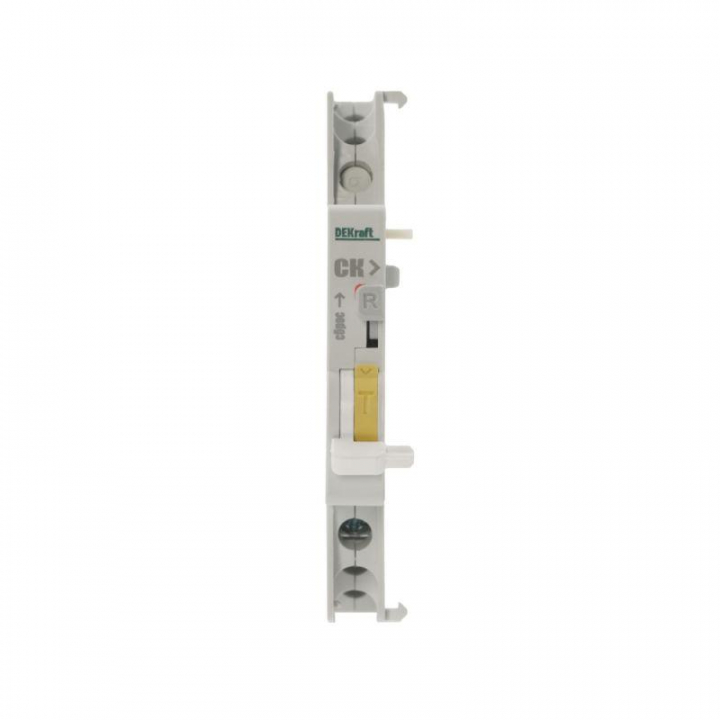 Контакт сигнальный СК-105 для автоматических выключателей серии ВА-105 и ВА-105 DC Dekraft; предназначен для сигнализации аварийного срабатывания выключателя; тип контакта переключающий; ширина 9 мм; присоединение к выключателю слева.