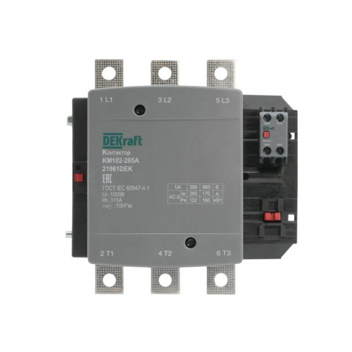 Контактор 265А 220В АС АС3 АС4 1НО+1НЗ КМ-102 DEKraft 21961DEK