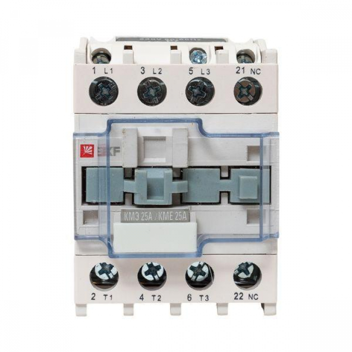 Контакторы КМЭ EKF PROxima состоят из корпуса, закрепленных в нем неподвижных контактов, подвижных контактов, которые закреплены в подвижной части магнитной системы. Неподвижная часть магнитной системы закреплена жестко в корпусе КМЭ. Пружина препятствует смыканию контактов. При подаче напряжения на катушку управления в магнитной системе контактора возникает магнитное поле, которое, преодолевая сопротивление пружины, смыкает магнитную систему и замыкает контакты. При отключении напряжения с катушки управления пружина размыкает контакты. Возможна коммутация алюминиевым и медным проводом. Основное назначение контактора КМЭ – частые дистанционные включения и выключения силовых электрических цепей в нормальном режиме работы.