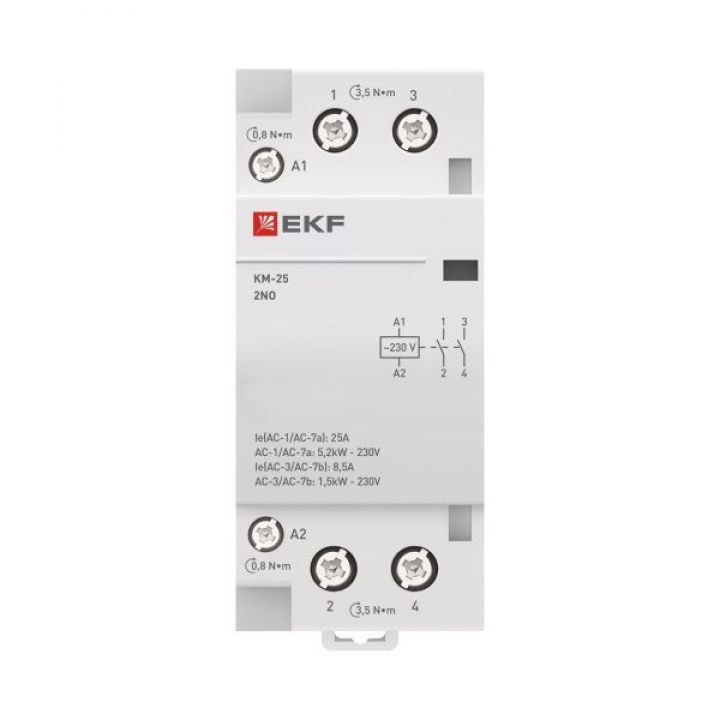 Контактор модульный КМ 25А 2NО (2 мод.) EKF km-2-25-20