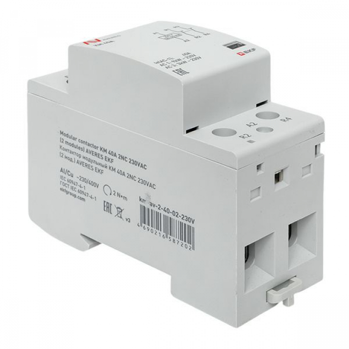 Контактор модульный КМ 40А 2NC 230В AC (2 мод.) AVERES EKF km-av-2-40-02-230V