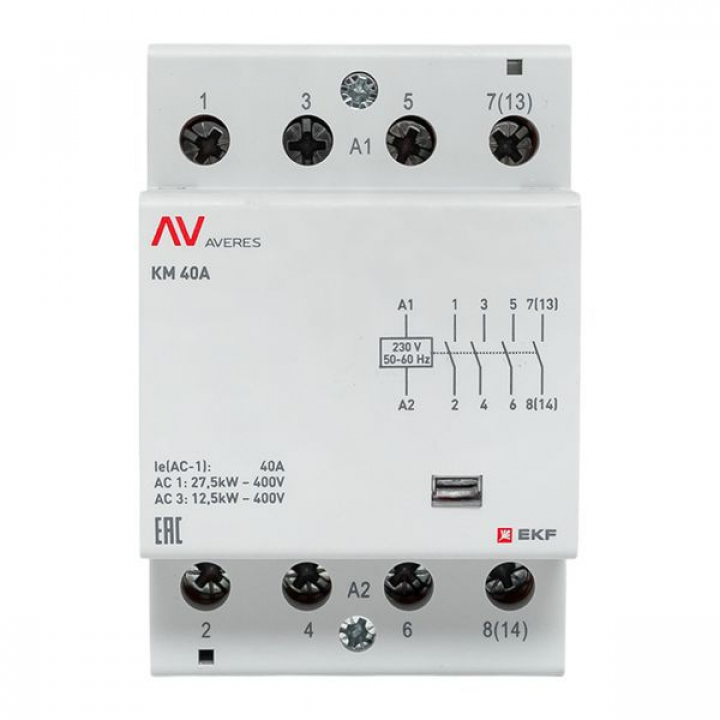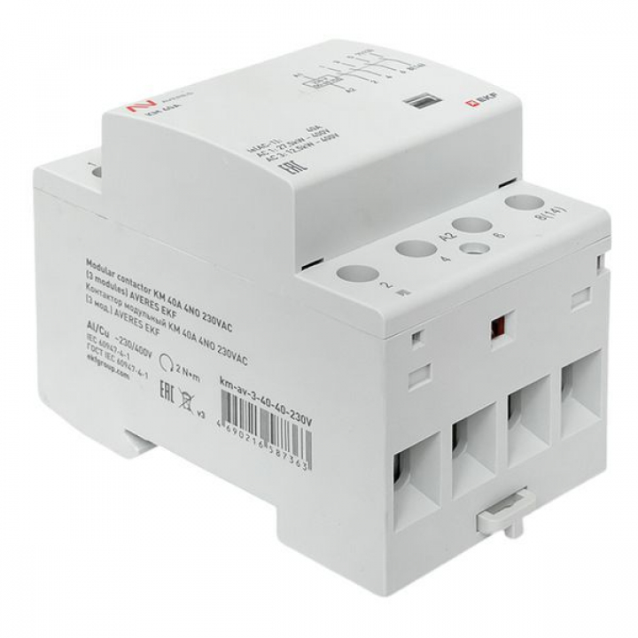 Контактор модульный КМ 40А 4NO 230В AC (3 мод.) AVERES EKF km-av-3-40-40-230V