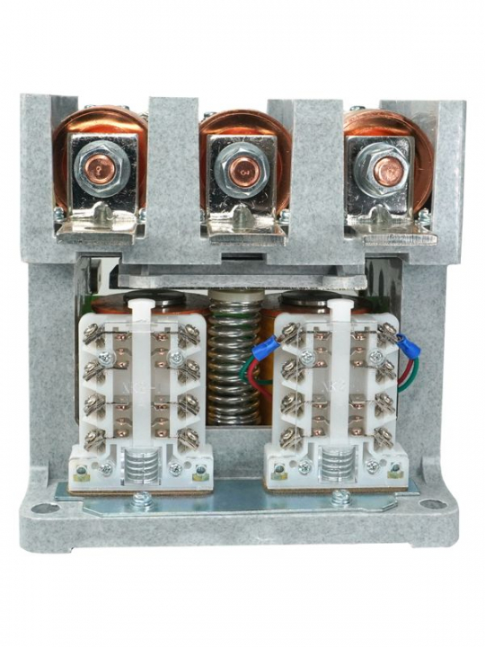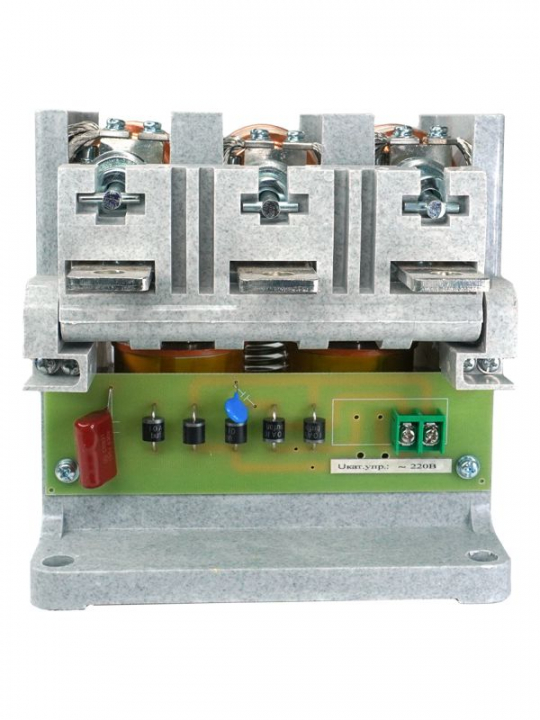 Контакторы вакуумные серии КВТ открытого исполнения с естественны воздушным охлаждением, встраиваемые в комплектные устройства, предназначены для использования в пускателях, станциях управления, для коммутации токов включения и отключения асинхронных электродвигателей с короткозамкнутым ротором и других приёмников электроэнергии в системах дистанционного управления электроприводами с тяжёлым режимом работы в цепи переменного тока 50-60 Гц, напряжением до 1140 В. Благодаря высокой электрической прочности вакуумного промежутка и отсутствию среды, поддерживающей горение дуги, электрическая дуга распадается и гаснет. * Высокий коммутационный и энергетический ресурс; * Высокая кратковременная нагрузочная способность для тяжелых пусков; * Отсутствие открытой электрической дуги и продуктов горения, * Высокое быстродействие; * Максимальная пожаро- и взрывобезопасность; * Низкий уровень шумов во время эксплуатации.