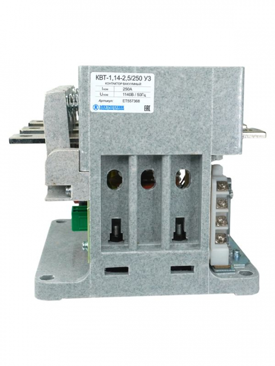 Контактор вакуумный КВТ-1.14-2.5/250-3 У3 3п 250А кат. 220В AC 4НО+3НЗ IP00 без реле Электротехник ET557368