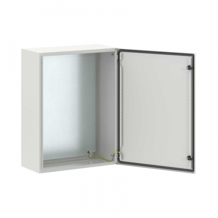 Навесные корпуса серии STE предназначены для систем автоматизации и распределения электроэнергии. Корпус, дверь, фланец серии STE изготавливаются из листовой стали толщиной 1,5 мм с атмосферостойким порошковым покрытием, цвет RAL7035. Монтажная плата изготовлена из оцинкованной стали толщиной 1,8 мм. Степень защиты IP66, ударопрочность IK10, сейсмостойкость 9 баллов по шкале MSK-64, климатическое исполнение УХЛ1, ОМ2, ОМ3, группа горючести Г1. Комплект поставки: корпус, дверь реверсивная, монтажная плата с двунаправленной разметкой, дверные рейки, поворотный замок 2 шт., сплошной фланец для ввода кабеля 1 шт., комплект заземления с проводами заземления. Габариты 800x600x300 (ШхВхГ) мм.