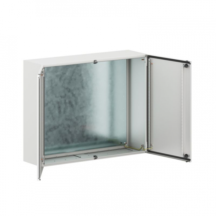 Навесные корпуса серии STE предназначены для систем автоматизации и распределения электроэнергии. Корпус, дверь, фланец серии STE изготавливаются из листовой стали толщиной 1,5 мм с атмосферостойким порошковым покрытием, цвет RAL7035. Монтажная плата изготовлена из оцинкованной стали толщиной 1,8 мм. Степень защиты IP55, ударопрочность IK10, сейсмостойкость 9 баллов по шкале MSK-64, климатическое исполнение УХЛ1, ОМ2, ОМ3, группу горючести согласно Г1. Комплект поставки: корпус, двустворчатая дверь, монтажная плата с двунаправленной разметкой, дверные рейки, поворотный замок 2 шт., сплошной фланец для ввода кабеля 2 шт., комплект заземления с проводами заземления. Габариты 800х1000х300 (ШхВхГ) мм.