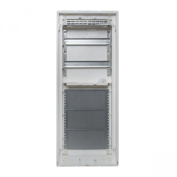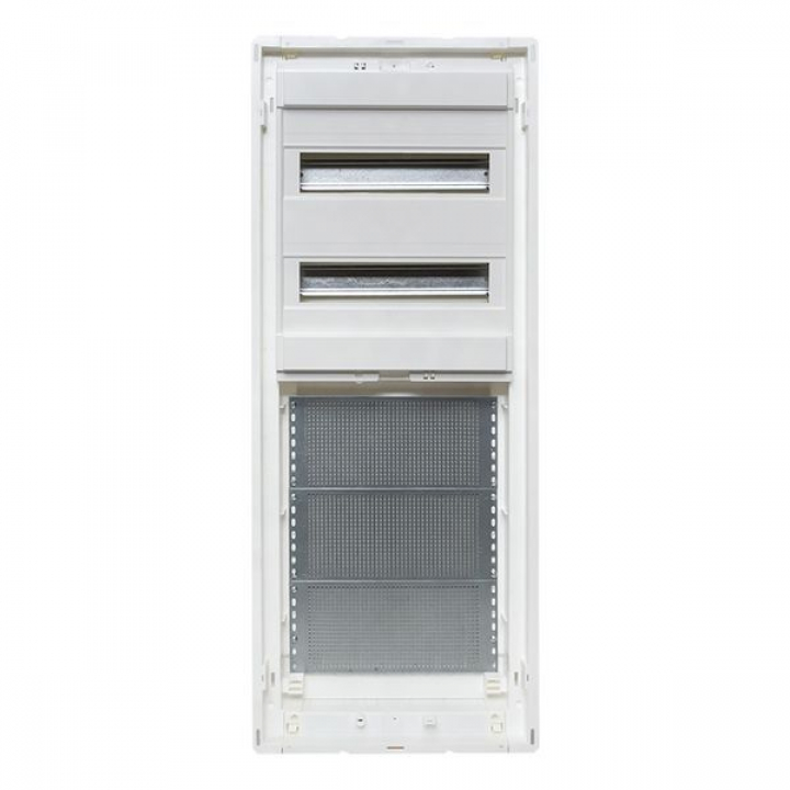Корпуса пластиковые серии «Nova» предназначены для сборки силовых, слаботочных и комбинированных щитов. На DIN-рейки устанавливается модульное оборудование. На монтажные платы – антенные разветвители, Wi-Fi роутеры, патч-панели и иное слаботочное оборудование. Щиты устанавливаются как в бетонные и кирпичные стены, так и в гипсокартон, монтажные комплекты для установки в гипсокартон входят в комплектацию оснований щитов либо в комплектацию щитов в сборе. Двери щитов можно выбрать их разных материалов – пластик, металл или металл с перфорацией. Также доступны дополнительные аксессуары, необходимые для установки мультимедийного оборудования и существенно упрощающих монтаж щитов. Есть возможность приобрести как отдельно основание щита и дверь, так и основание с дверью в комплекте в одной коробке. Основные преимущества: съемные шасси с din-рейками, съемные кабельные фланцы, гребенка для фиксации входящих проводников, регулировка дверей по глубине, современный минималистичный дизайн