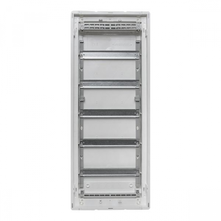 Корпуса пластиковые серии «Nova» предназначены для сборки силовых, слаботочных и комбинированных щитов. На DIN-рейки устанавливается модульное оборудование. На монтажные платы – антенные разветвители, Wi-Fi роутеры, патч-панели и иное слаботочное оборудование. Щиты устанавливаются как в бетонные и кирпичные стены, так и в гипсокартон, монтажные комплекты для установки в гипсокартон входят в комплектацию оснований щитов либо в комплектацию щитов в сборе. Двери щитов можно выбрать их разных материалов – пластик, металл или металл с перфорацией. Также доступны дополнительные аксессуары, необходимые для установки мультимедийного оборудования и существенно упрощающих монтаж щитов. Есть возможность приобрести как отдельно основание щита и дверь, так и основание с дверью в комплекте в одной коробке. Основные преимущества: съемные шасси с din-рейками, съемные кабельные фланцы, гребенка для фиксации входящих проводников, регулировка дверей по глубине, современный минималистичный дизайн