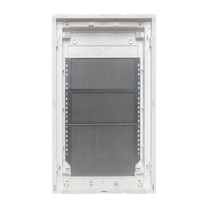 Корпуса пластиковые серии «Nova» предназначены для сборки силовых, слаботочных и комбинированных щитов. На DIN-рейки устанавливается модульное оборудование. На монтажные платы – антенные разветвители, Wi-Fi роутеры, патч-панели и иное слаботочное оборудование. Щиты устанавливаются как в бетонные и кирпичные стены, так и в гипсокартон, монтажные комплекты для установки в гипсокартон входят в комплектацию оснований щитов либо в комплектацию щитов в сборе. Двери щитов можно выбрать их разных материалов – пластик, металл или металл с перфорацией. Также доступны дополнительные аксессуары, необходимые для установки мультимедийного оборудования и существенно упрощающих монтаж щитов. Есть возможность приобрести как отдельно основание щита и дверь, так и основание с дверью в комплекте в одной коробке. Основные преимущества: съемные шасси с din-рейками, съемные кабельные фланцы, гребенка для фиксации входящих проводников, регулировка дверей по глубине, современный минималистичный дизайн