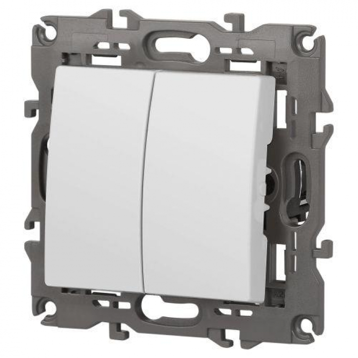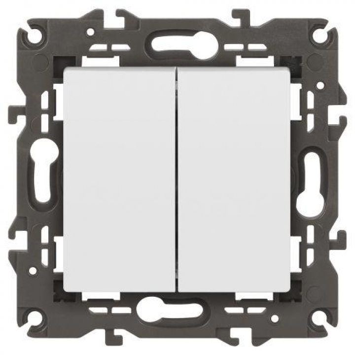 Переключатель 2-клавишный проходной серии Эра Elegance цвет белый матовый 14-1106-01М. Характеристики 10А 250В. Оснащён автоматическими клеммами для надёжной фиксации жил кабеля в механизме. Рамки приобретаются отдельно.