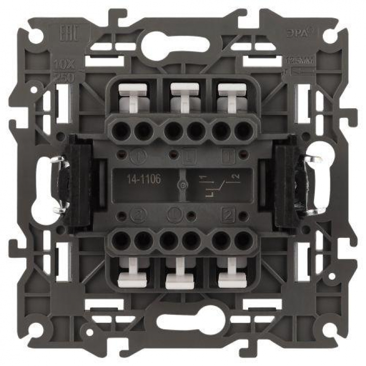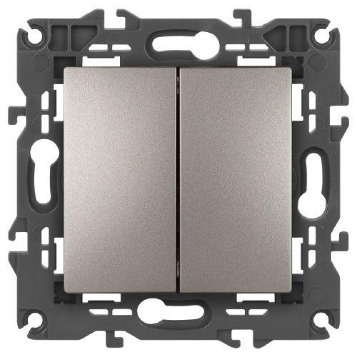 Переключатель 2-клавишный проходной серии Эра Elegance цвет титан 14-1106-16. Характеристики 10А 250В. Оснащён автоматическими клеммами для надёжной фиксации жил кабеля в механизме. Рамки приобретаются отдельно.