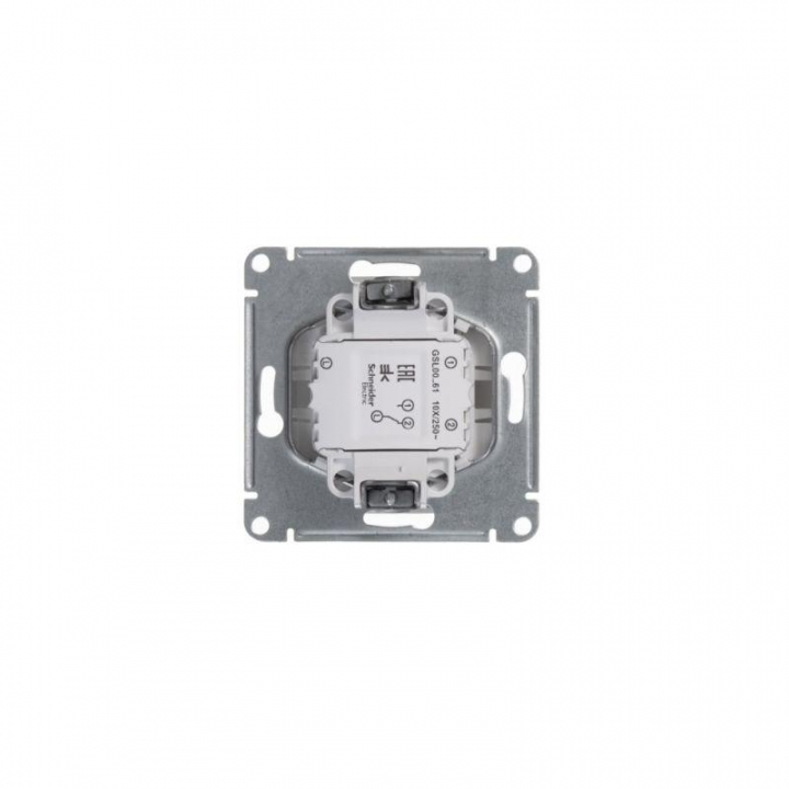 Механизм Systeme Electric (ранее Schneider Electric) серии Glossa (цвет белый) переключателя 1-клавишного подходит для сетей 250 В, на ток 10 А. Переключатель позволяет управлять одним источником света с двух точек. Выполнен из материала PС+ASA, стойкого к УФ-излучению и появлению царапин. Эргономичные клеммы расположены в два ряда: сверху и снизу.