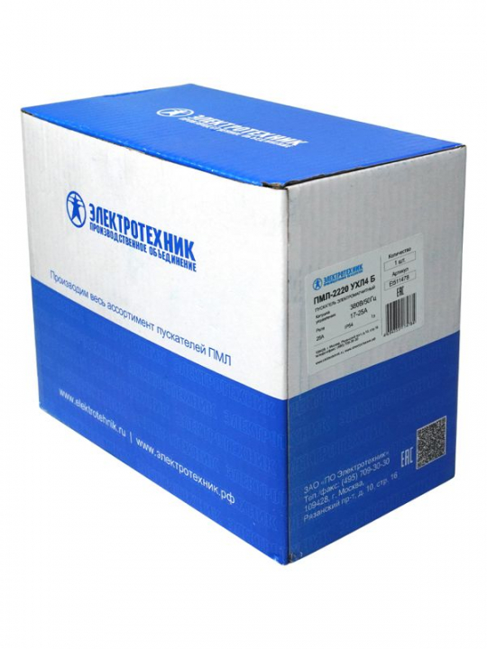 Пускатель электромагнитный ПМЛ-2220 УХЛ4 Б 25А 380В/50Гц AC 1НО IP54 нереверсивный с реле РТЛ-1022-2 17-25А Электротехник ET511478