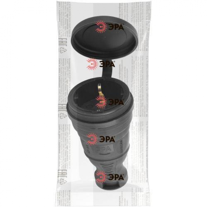 Разъем каучуковый с заземл. прям. 16А IP44 черн. Эра Б0044541