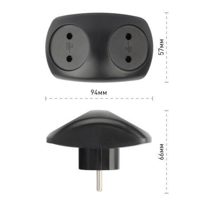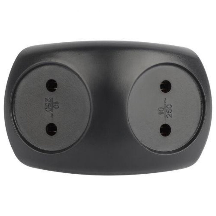 Разветвитель электрический SPx-2-B на 2 розетки без заземл. 10А черн. Эра Б0059720