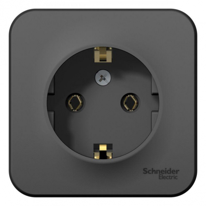 Розетка Systeme Electric (ранее Schneider Electric) BLANCA (антрацит, открытой установки) одноместная с заземлением, без шторок, предназначена для сетей до 250В, на ток до 16А. Заземление обеспечивает безопасность при косвенном прикосновении. Она изготовлена из ABS-пластика, проста в установке и удобна в применении.
