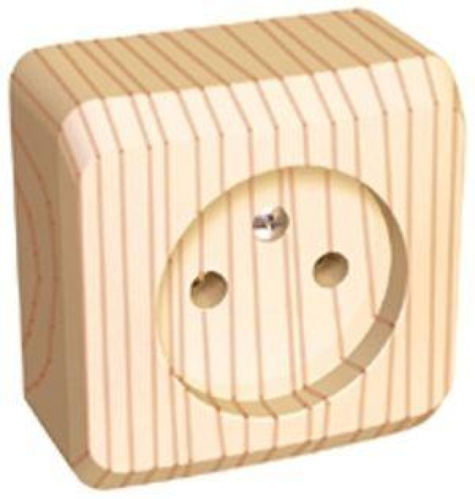 Розетка Systeme Electric (ранее Schneider Electric) ЭТЮД (сосна, открытой установки) одноместная предназначена для применения в сетях до 250В, на ток до 16А, без шторок и заземления. Она проста в установке и удобна в применении, идеально подходит для загородного дома. Изделия цвета Сосна обладают уникальным рисунком, напоминающим древесный сруб. Сделано в России.