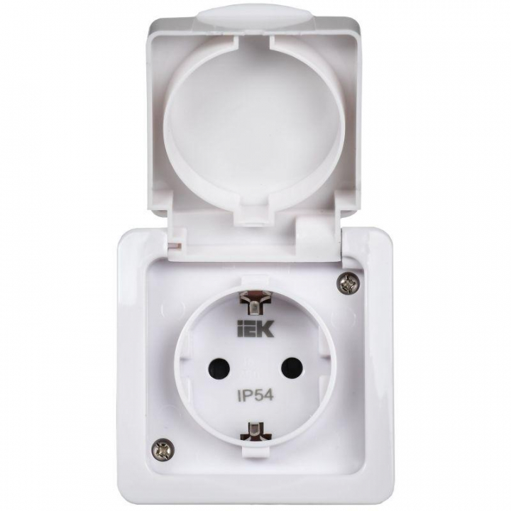 Розетка 1-м ОП Гермес Plus РСб20-3-ГПБб 16А IP54 с заземл. с крышкой бел. IEK ERMP12-K01-16-54-EC