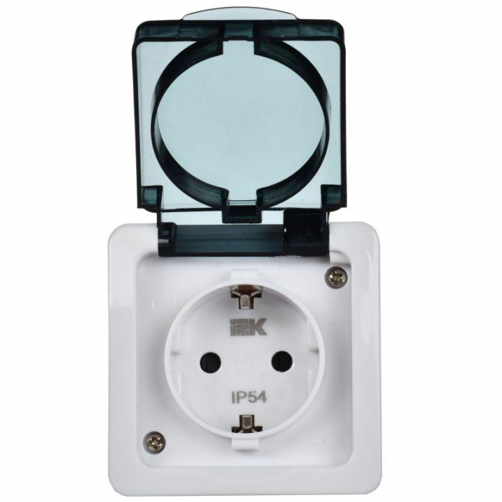 Розетка 1-м ОП Гермес Plus РСб20-3-ГПБд 16А IP54 с заземл. с дым. крышкой бел. IEK ERMP12-K03-16-54-EC