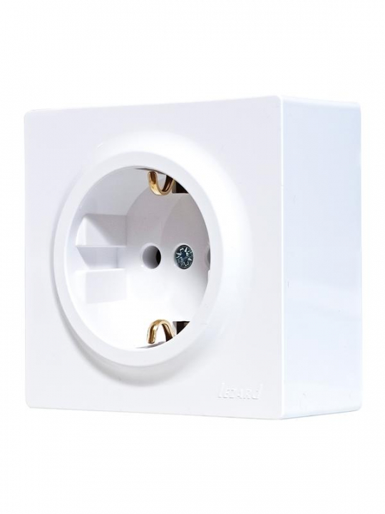 Розетка 1-м ОП LETO с заземл. ПБТ бел. LEZARD 752-0200-122B