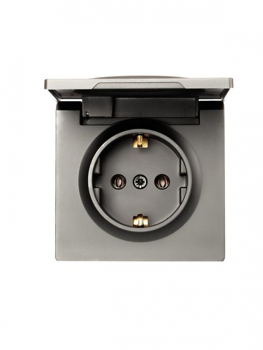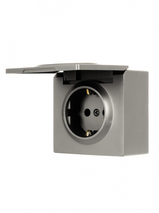 Розетка 1-м ОП LETO с заземл. с крышкой LETO ПБТ платина LEZARD 752-3500-123B
