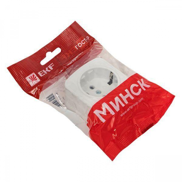 Розетка 1-м ОП Минск 16А IP20 с заземл. бел. Basic EKF EGR16-028-10