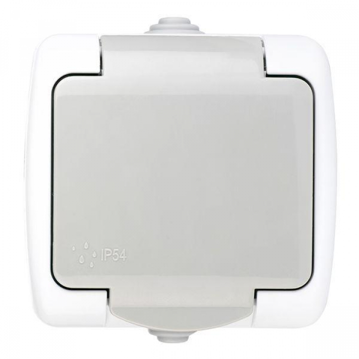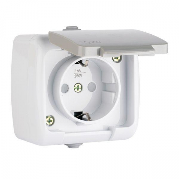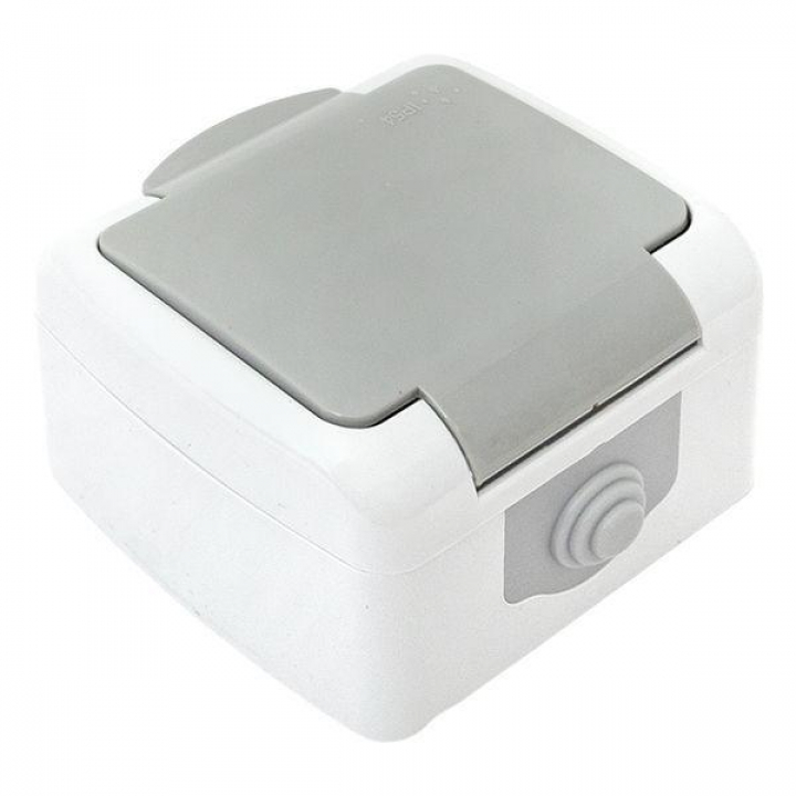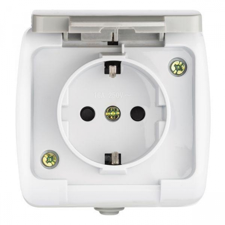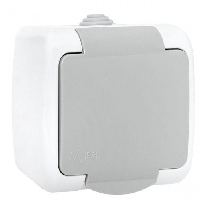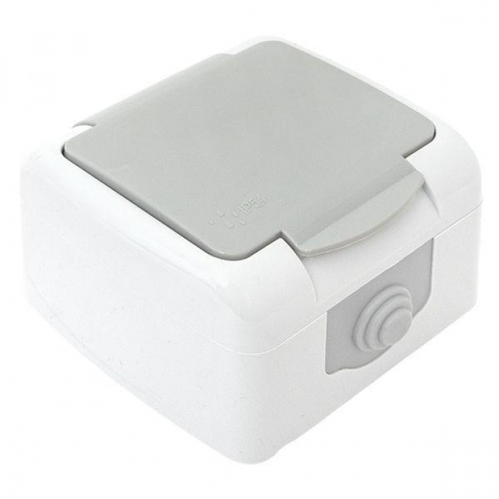 Розетка 1-м ОП Мурманск 16А IP54 с заземл. защ. шторки с крышкой сер. EKF EFR16-029-30-54
