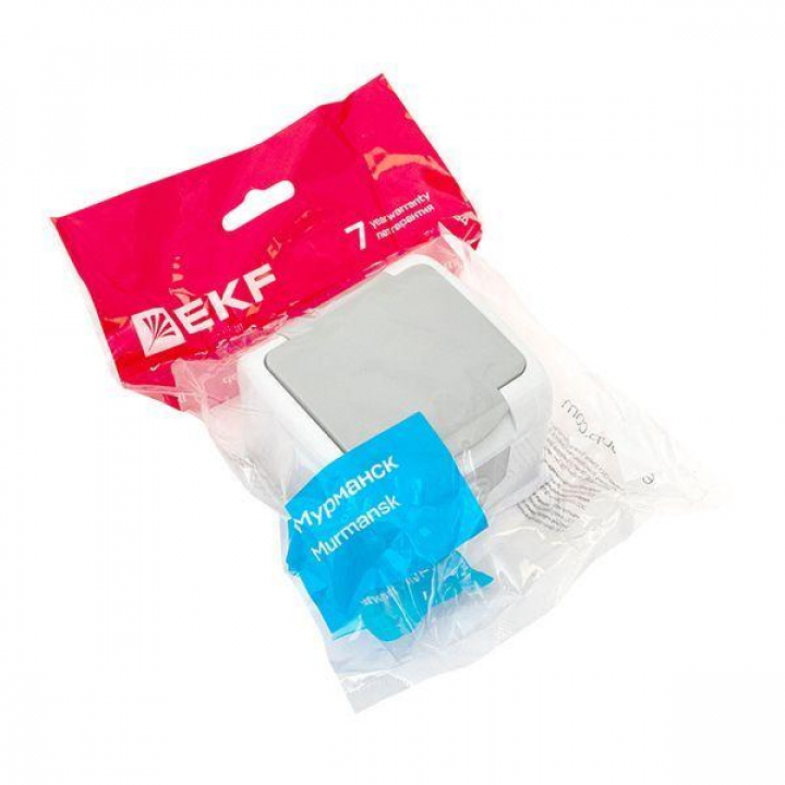 Розетка одноместная EKF серии Мурманск с заземлением, со шторками и крышкой позволяет организовать электроснабжение в условиях высокой влажности и пыльных помещениях, на улице при условии установки под навесом. Ступенчатые герметичные вводы с двух сторон изделия обеспечивают надежную защиту, позволяя использовать устройство в агрессивных условиях.