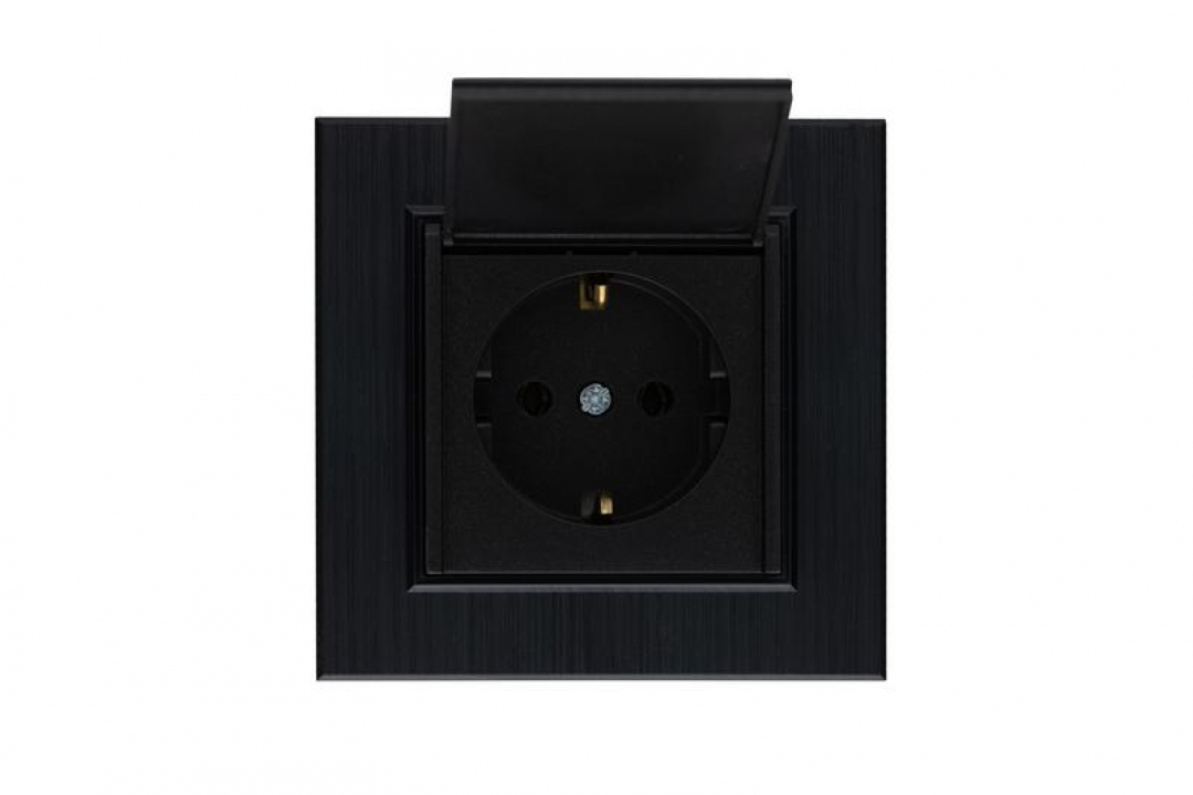 Розетка 1-м с крышкой Karea LINE STAR с заземл. чер. Makel 86054029