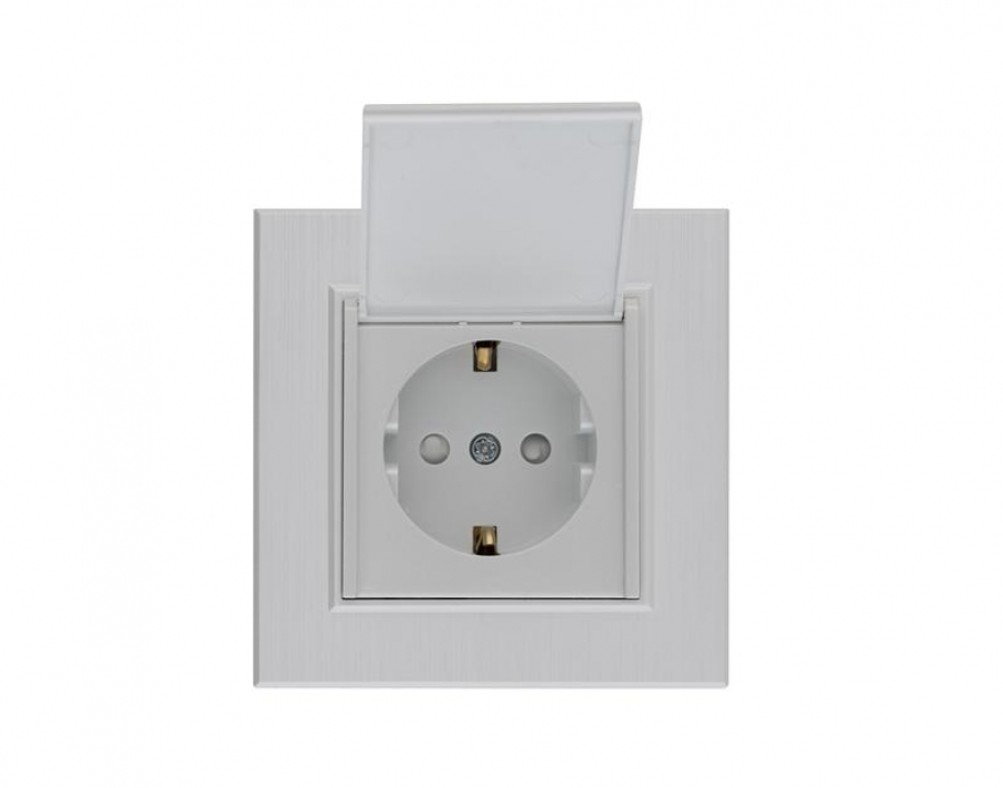 Розетка 1-м с крышкой Karea LINE STAR с заземл. жемчуж. Makel 86100029