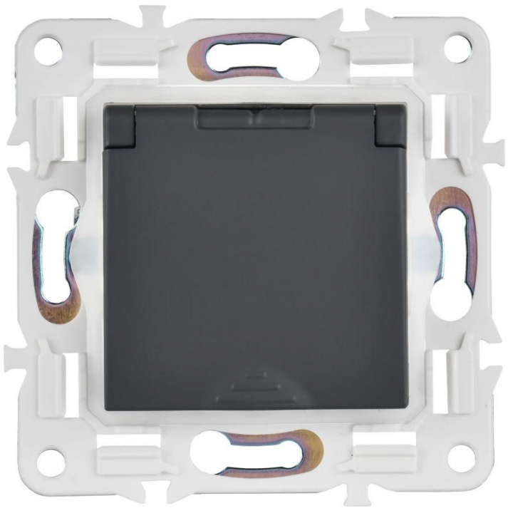 Розетка 1-м SKANDY 16А IP44 с заземл. защ. шторки с крышкой SK-R11G графит IEK SK-R16-16-44-K53
