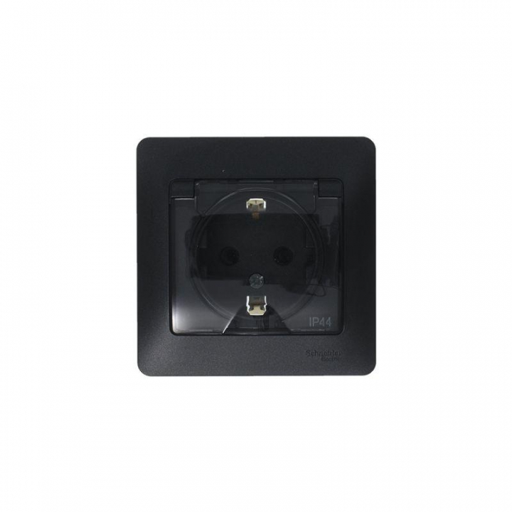 Розетка 1-м СП 1мод. Glossa 16А IP44 с заземл. защ. шторки с крышкой в сборе антрацит SE GSL000748