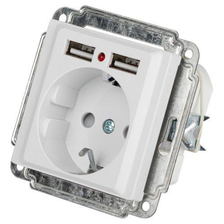 Розетка с USB с заземлением со шторками серии Intro Accent скрытой установки механизм цвет белый 6-410-01. Номинальные характеристики 16А 250В / 2,1А 5В. Выполнена из негорючего термопласта. Монтаж в подрозетник производится и на лапки, и на винты. Рамка приобретается отдельно. В серии представлены рамки до 5 постов: на 1 пост - 6-501-хх, на 2 поста - 6-502-хх, на 3 поста - 6-503-хх, на 6 поста - 4-504-хх, на 5 постов - 6-505-хх (где хх - цветовой код: 01 - белый, 01М - матовый белый, 02 - слоновая кость, 03 - алюминий, 04 - шампань, 05 - антрацит, 06 - перламутр, 07 - графит, 08 - бронза, 09 - титан, 10 - венге, 11 - сосна)