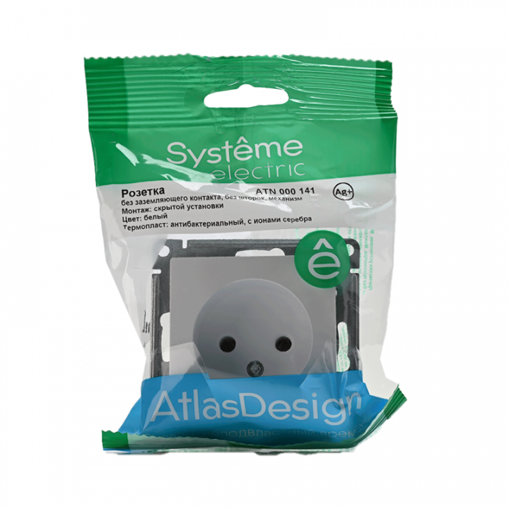 Механизм Systeme Electric (ранее Schneider Electric) серии AtlasDesign в цвете белый розетки одинарной без заземления и без шторок подходит для сетей 250 В, на ток 16 А. Пластик с ионами серебра в белом цвете обеспечивает антибактериальный эффект. Лицевые детали из качественного ABS-пластика, устойчивого к царапинам и УФ-излучению. Усиленные прямые монтажные лапки для лучшей фиксации механизма в монтажной коробке.