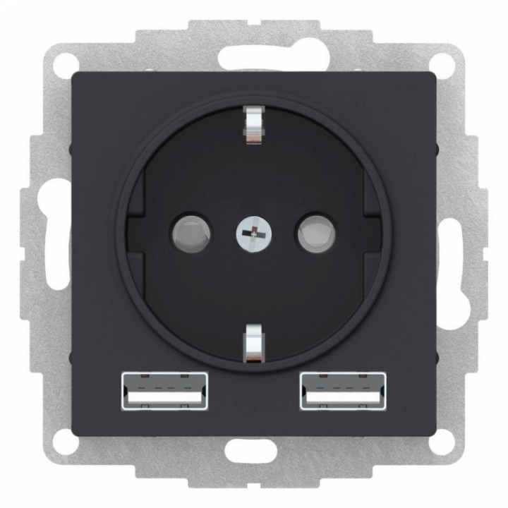 Розетка силовая Systeme Electric (ранее Schneider Electric) серии AtlasDesign 16А в цвете карбон с заземлением и шторками с розеткой USB, с двумя разъемами типа А. Лицевые детали из качественного ABS-пластика, устойчивого к царапинам и УФ-излучению. Заземляющий контакт обеспечивает дополнительную защиту от удара электрическим током. Шторки обеспечивают дополнительную безопасность в доме, где находятся дети. Одно устройство позволяет как подключить бытовые приборы, так и зарядить мобильные устройства.