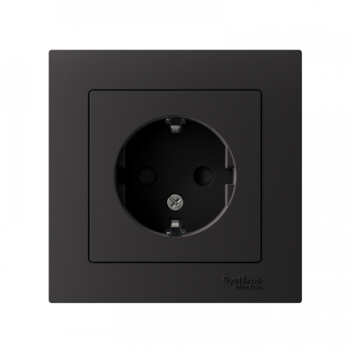 Розетка в сборе Systeme Electric (ранее Schneider Electric) серии AtlasDesign в цвете карбон одинарная с заземлением и без шторок подходит для сетей 250 В, на ток 16 А. Заземляющий контакт обеспечивает дополнительную защиту от удара электрическим током. Лицевые детали из качественного ABS-пластика, устойчивого к царапинам и УФ-излучению. Изделие поставляется в комплекте с рамкой того же цвета. Благодаря покрытию «soft touch» к изделию приятно прикасаться.
