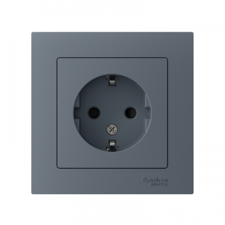Розетка в сборе Systeme Electric (ранее Schneider Electric) серии AtlasDesign в цвете грифель одинарная с заземлением и без шторок подходит для сетей 250 В, на ток 16 А. Заземляющий контакт обеспечивает дополнительную защиту от удара электрическим током. При наличии заземления электрический потенциал уходит в землю, защищая человека. Лицевые детали из качественного ABS-пластика, устойчивого к царапинам и УФ-излучению. Изделие поставляется в комплекте с рамкой того же цвета.