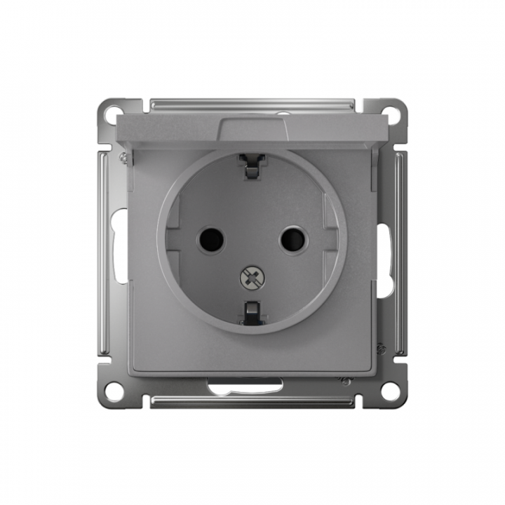 Механизм Systeme Electric (ранее Schneider Electric) серии AtlasDesign в цвете алюминий розетки одинарной с заземлением, шторками и крышкой подходит для сетей 250 В, на ток 16 А. Заземляющий контакт обеспечивает дополнительную защиту от удара электрическим током. При наличии заземления электрический потенциал уходит в землю, защищая человека. Лицевые детали из качественного ABS-пластика, устойчивого к царапинам и УФ-излучению. Усиленные прямые монтажные лапки для лучшей фиксации механизма в монтажной коробке.