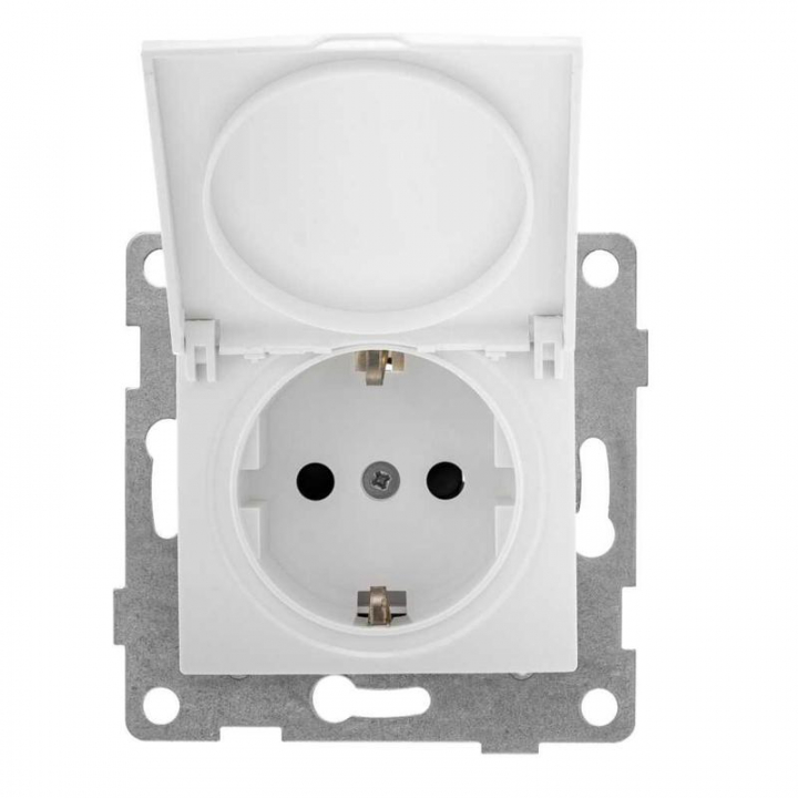 Розетка 1-м СП Bravo 16А 250В с заземл. защ. шторки с крышкой механизм бел. GUSI С10Р91-001