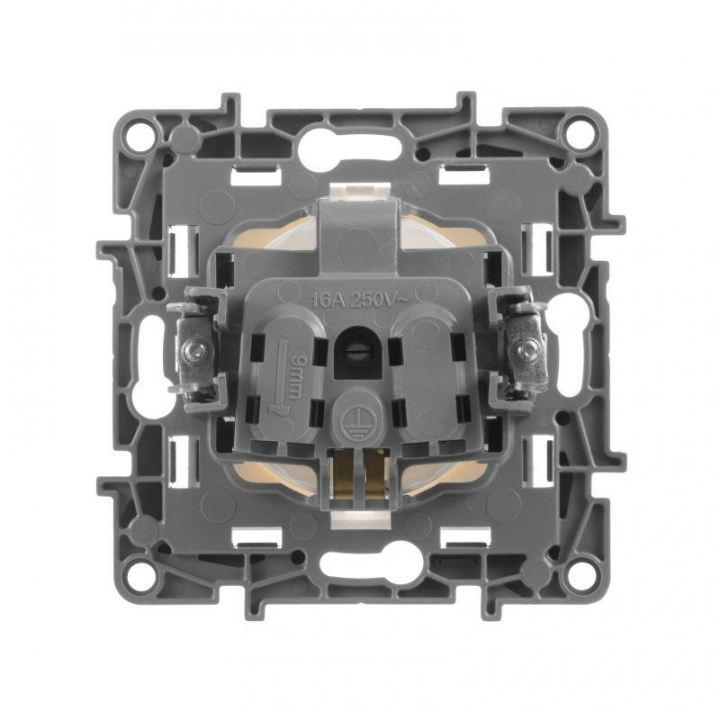 Розетка с заземлением ETIKA для скрытого монтажа. Максимальный ток 16 А, максимальная мощность 3680 Вт. Применяется в зданиях, оборудованных для повышения безопасности проводкой с заземлением (с защитным проводником).