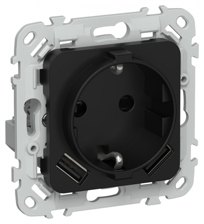 Розетка 1-м СП FLITE РСЮша11-1-ФлЧ 16А с USB A+A 3.1А с заземл. с защ. шторками безвинтовое крепление механизм черн. IEK FI-R14-16-1-U21-D31-K02